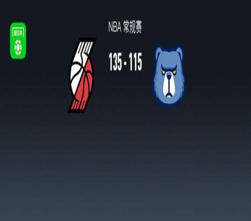 第四节开拓者吕佩尔拿下12分,灰熊普罗斯珀拿下5分,最终开拓者135-115战胜灰熊