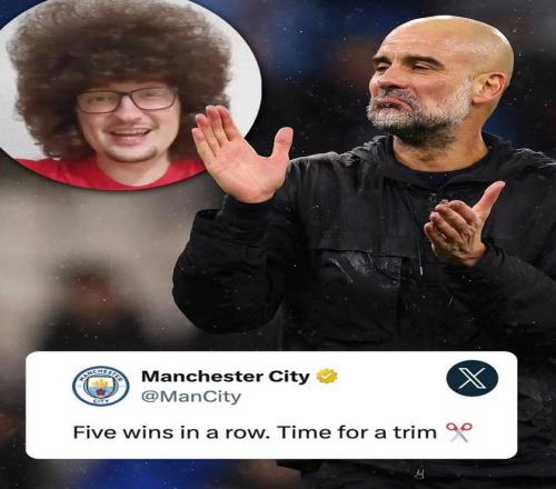 曼城在本轮英超战胜纽卡后取得各项赛事五连胜,赛后,曼城官方调侃曼联球迷“蓄发哥”,写道:“五连胜。是时候修剪一下了✂️”