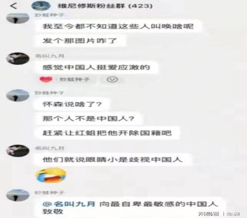 据网友爆料,在国内的一个423人的维尼修斯粉丝群里面,某球迷表示:“我至今都不知道这些人叫唤什么,发个图片咋了?赫伊森说啥了?那个人不是中国人?赶紧把他开除国籍吧。”