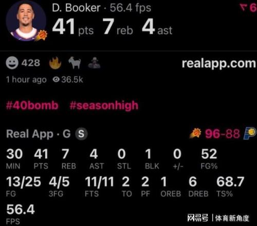 这听起来是不是有些不可思议?那些不太关注太阳队比赛的朋友,或许还以为布克每隔一两周就能有一场40+的精彩表现呢。
