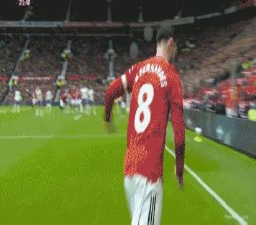 易边再战,第52分钟,B费反击当中送出直传,姆伯莫小角度劲射,大马丁飞身扑出,明斯大脚解围。紧接着的角球攻势,B费传中落点恰到好处,卡塞米罗抢点头槌破门,曼联打破僵局,1-0!
