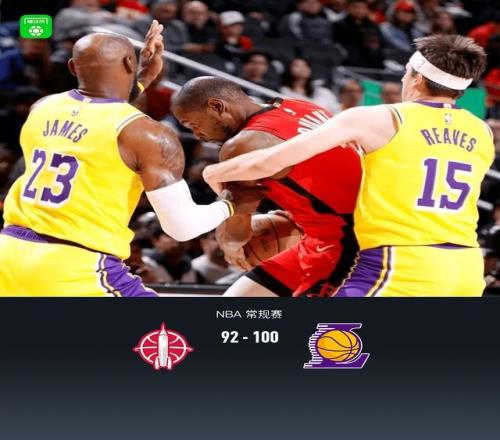 第四节,前半节湖人进攻连续不中,火箭杜兰特遭遇包夹同样进攻受困,节中段史密斯连得5分反超3分,湖人詹姆斯罚球止血,随后火箭一回合3次前场板4次进攻连续不中,杜兰特继续遭遇包夹,湖人连续三分不中,终于艾顿补篮反超,东契奇抛投领先3分,火箭阿门造杀伤罚球止血,随后湖人斯马特终于三分命中,火箭继续哑火,湖人艾顿连续得4分领先至8分,随后火箭再度失误,湖人詹姆斯反击保持彻底杀死比赛,最终湖人100-92火箭。