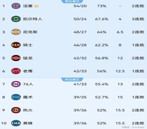 猛龙那,在当今联盟绝对是数一数二的,就像给对手布了个“天罗地网”。本赛季到现在,场均失分112.0,排在联盟第九;防守效率112.1,排在第五;限制对手命中率46.5%,排在第十,这数据就像给猛龙的防守实力盖了个“官方的大印。目前猛龙42胜32负,排在东部第五,就比第七的费城(41-33)多赢了一场,这排名就像在悬崖边上跳舞,稍有不慎就可能掉下去。魔术39胜35负,排在东部第八,落后第六的老鹰(42-33)2.5个胜场,这差距就像一道难以跨越的鸿沟。