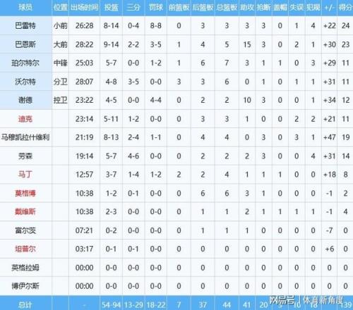 这场比赛猛龙那叫一个全民皆兵,多达8个人得分都上双了。2米06的内线大将马穆凯拉什维利,正负值高得离谱,就像坐了火箭一样飙到了+47,简直牛到没朋友!再看看魔术这边,只有三个人得分上双,而且没有一个人得分能接近20分,这差距,就像大人打小孩儿似的。