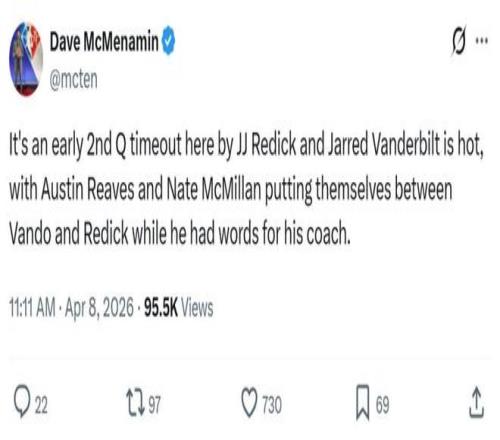 第二节范德比尔特被换下后情绪激动,直接在场边与雷迪克发生口角内讧。