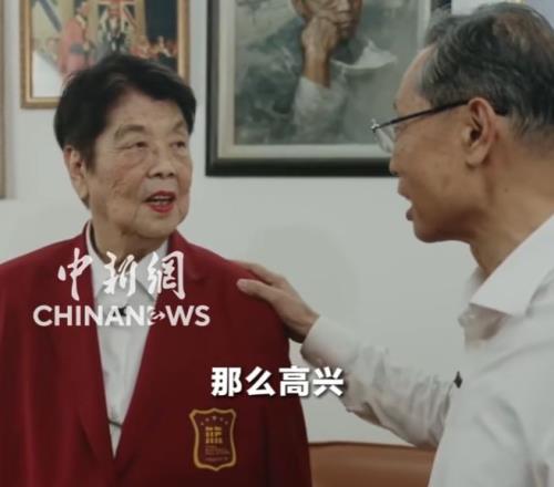 视频中,钟南山亲手为妻子披上荣耀礼服,并对妻子说“很少见到你那么兴奋,那么高兴。也是我们家的一个光荣。”