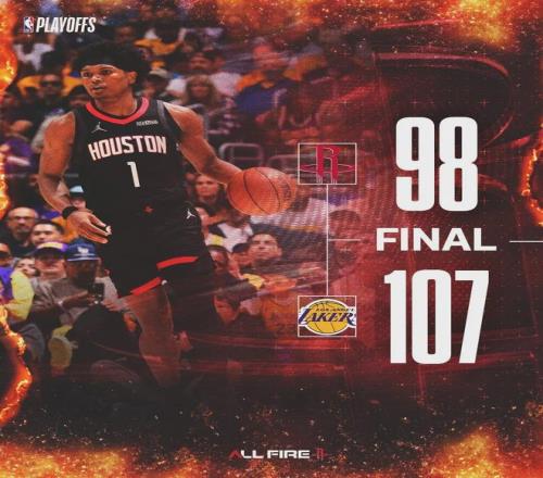 21-3,火箭赢了湖人多达18个前场板,但还是98-107落败。