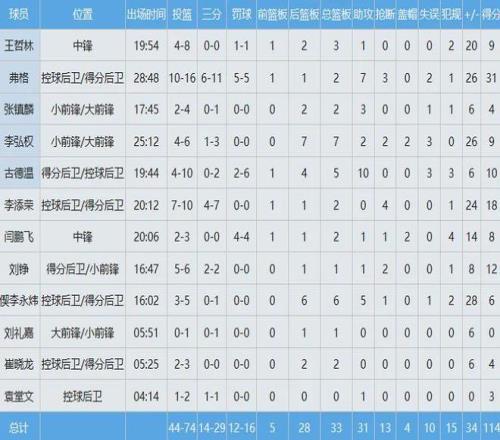 辽宁队数据如下: