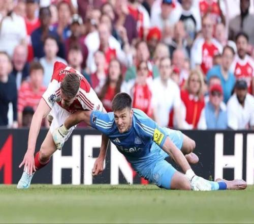 “在我看来,这是一张明显的红牌。我已经看了10遍。”阿尔特塔所说的场景,是发生在对纽卡比赛第74分钟的一幕。当时厄德高后场长传,纽卡门将波普弃门而出试图解围,但一脚踢空错过了皮球。然后当哲凯赖什试图越过波普拿球直捣黄龙时,已经倒地的纽卡门将用手将其拦倒。此球当值主裁迅速做出了判断,向波普出示黄牌,随后VAR也一度进行复核,确认主裁的判罚无误。