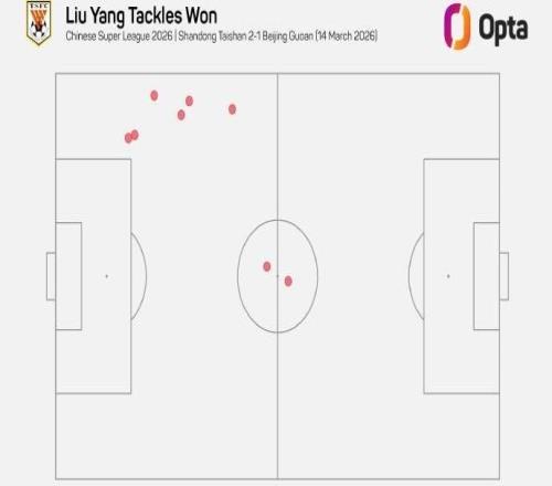8次抢断,刘洋刷新山东泰山队史球员中超单场抢断纪录